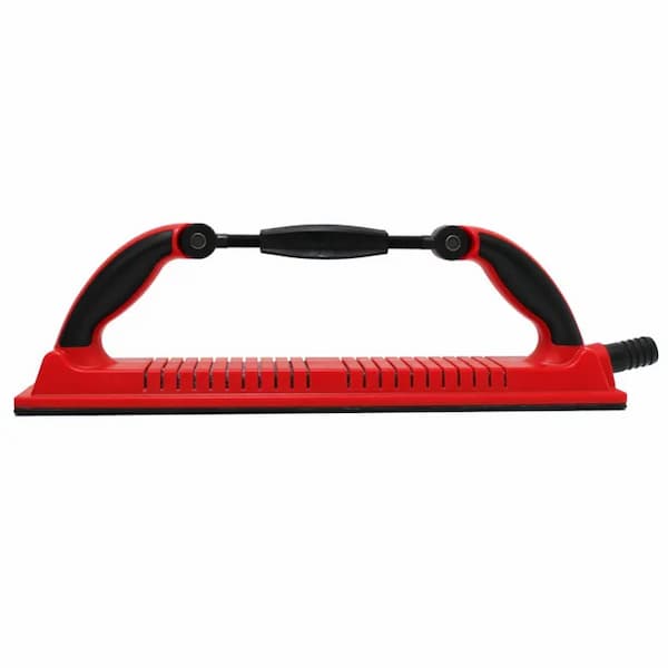 Гибкий шлифовальный блок с липучкой шириной 70 мм под абразивные полоски длиной 400 мм. Инструмент для обработки поверхностей как выпуклой, так и вогнутой формы. Для удобства регулировки радиуса изгиба блока на рукоятке инструмента предусмотрены желтые отметки (положение прямо) и отметка красного цвета (минимальный радиус изгиба).